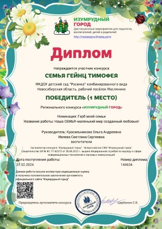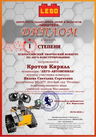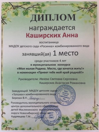 Воспитатель МКДОУ детского сада "Росинка" комбинированного вида